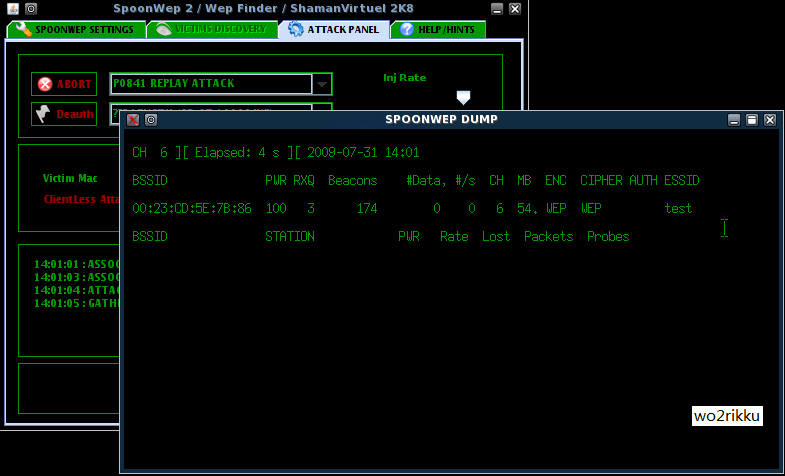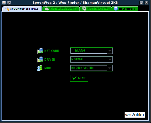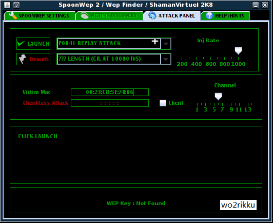 由于是自己的路由,mac地址已经知道。所以在mode一项选择了KNOWN VICTIM,直接输入mac地址,节约时间。