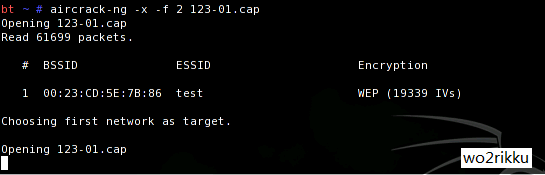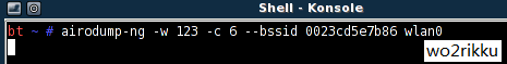 下面捕捉一下数据包。这一步可以在注入后再执行。但是为了体现变化过程,就在现在使用。其中,--bssid参数是指捕捉指定bssid。因为用自己的路由,所以直接输入以过滤其他路由的干扰。